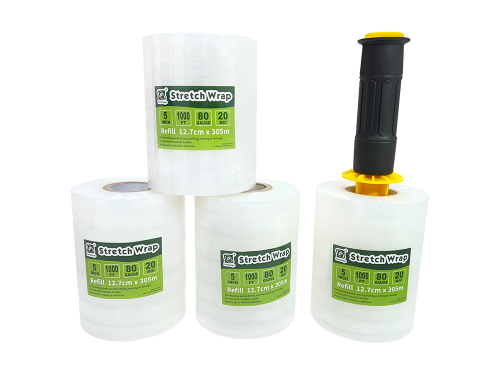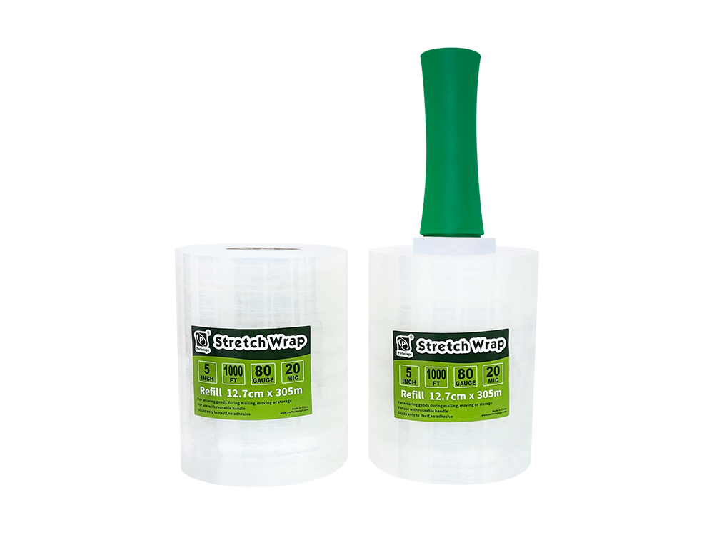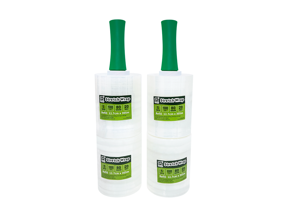 Stretch Film is made from LLDPE and glue solution. Excellent flexibility and superior cling characteristics. Widely used in the packaging industry, it holds boxes on a pallet for transport. Available in a variety of widths, lengths, and thicknesses to meet your special requirements. Be sure to keep it away from children to avoid the risk of suffocation.